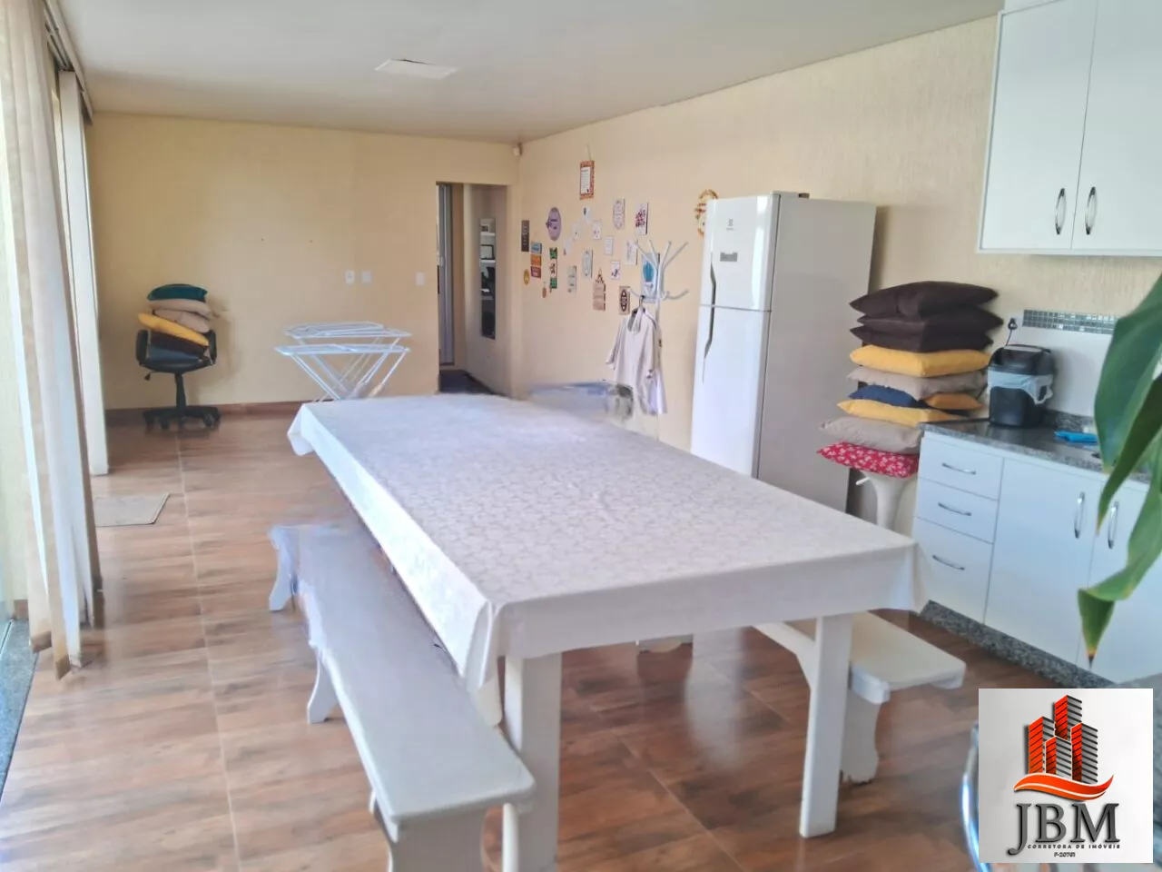 Nos fundos, um amplo espaço totalmente revestido em cerâmica, ideal para diversas finalidades — área gourmet, espaço kids, academia, ou o que sua criatividade permitir!